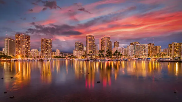 The most recognized skyline in the Hawaiian Islands belongs to Honolulu, the capital city located on Oʻahu. Honolulu is the economic and cultural hub of Hawaii, home to high-rise hotels, luxury condominiums, and office buildings that stretch skyward against a turquoise ocean backdrop.