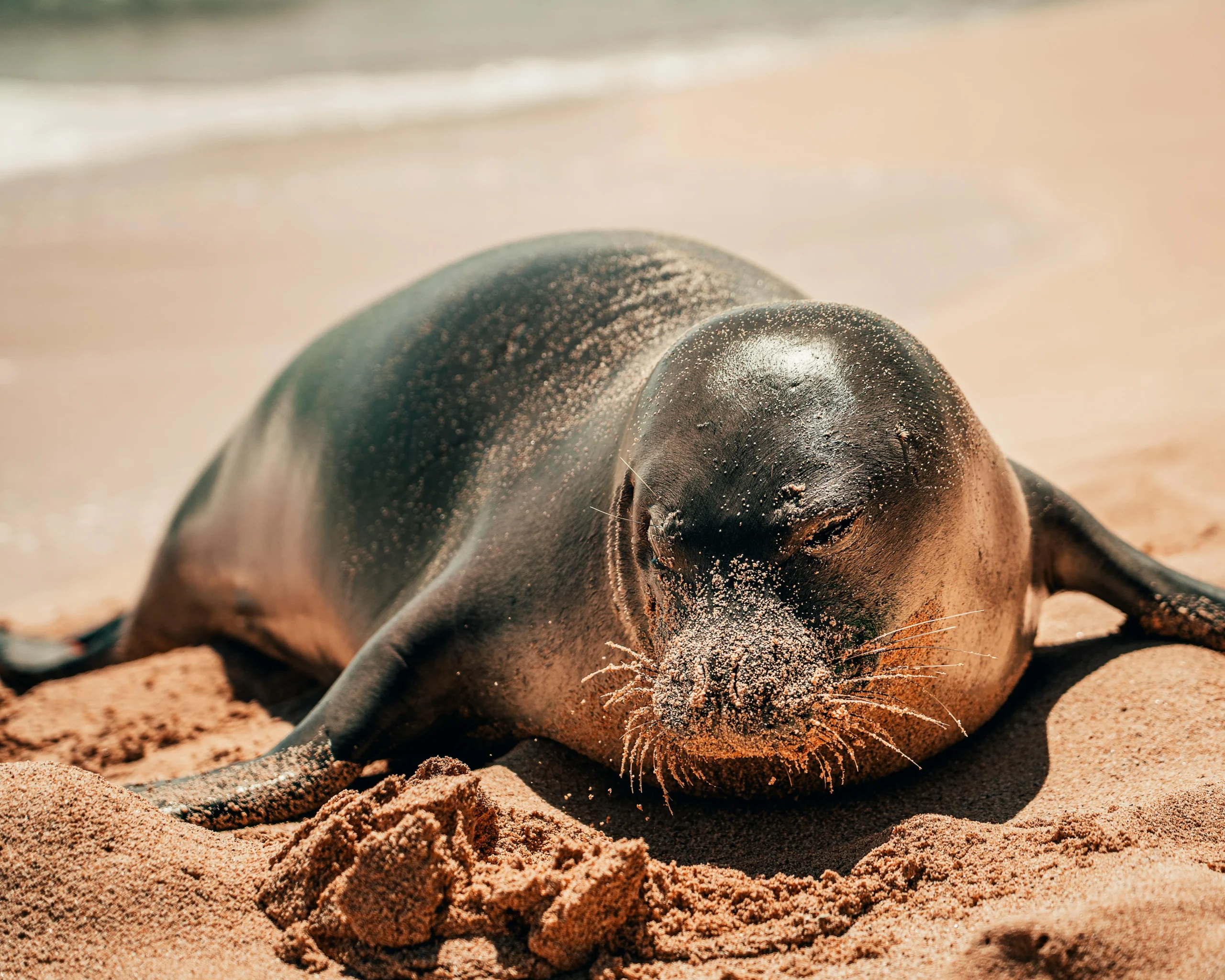 Seals are most common in the Northwestern Hawaiian Islands, but visitors to Maui, O‘ahu, and Kaua‘i frequently spot them resting on beaches or swimming nearshore.